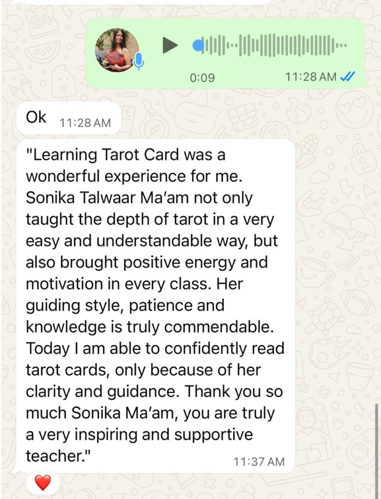 Sonika Talwair is a distinguished Tarot Card Reader with a Masters in Business Administration, blending her technical expertise with strategic business insights.